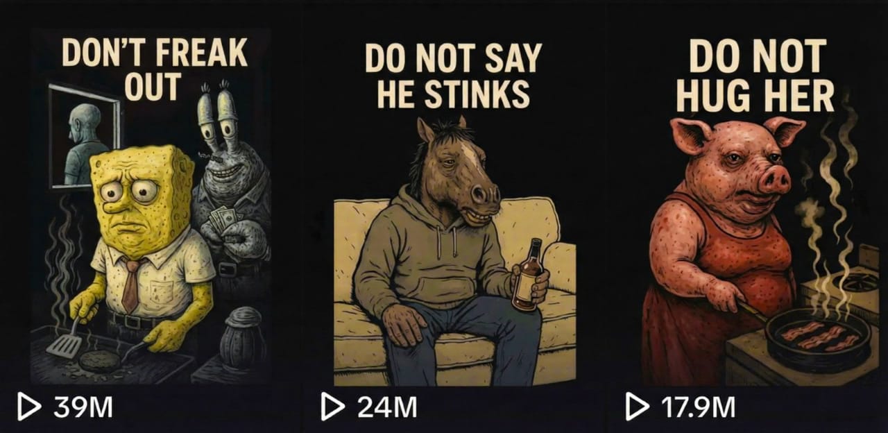 The formula is engineered for virality. Viewers don’t scroll because every clip feels like a mini horror comic with a punchline.